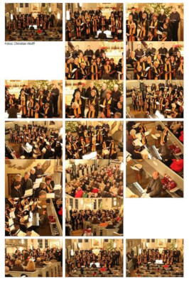 Im frohen Swing klang dieser Block mit dem strahlenden Evergreen „New York, New York" unter großem Beifall aus. Bei den folgenden Spirituals faszinierte das Arrangement zum bekannten „Nobody knows...", -das war gekonnt und fesselnd. Rod Stewards Hit „I am sailing" wurde mit Bravorufen belohnt, während der „Rausswerfer- Song" „Hit the road Jack" in seiner fesselnden Dynamik bei heißer Rhythmik und lebhaften Chordialogen wiederum ein Volltreffer war. Mit „Shake Rattle and Roll" blieb die beste Laune im erkennbar begeisterten Publikum, das gern mitsummte und -klatschte gleich mal so weit oben, dass der lange und begeisterte Beifall drei Zugaben brachte. Auch hier zeigten die 25 Choristen, denen heute acht Sopranistinnen fehlten, Bestleistungen, die auch von anwesenden Chorleitern gern bestätigt wurden. Dieses Fehlen fiel gar nicht auf, so freute sich Hans Mohr über dieses gelungene Konzert, für das am Ausgang gern der Zille gespendet wurde.